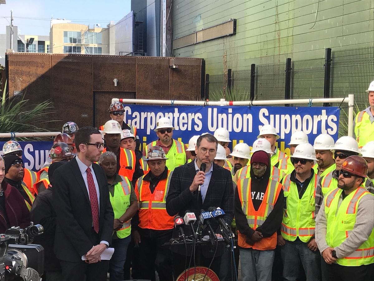 If successful, SB 79 will kick off a building boom that will create a lot of new construction jobs and bid up the wages of workers. In the meantime, we look forward to working with the carpenters and building trades on bills to legalize high-rise residential developments around downtown transit hubs—projects well-suited to create good union construction jobs.